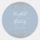 Sticker Rond Mariage moderne Dusty Blue Silver Parties scintill