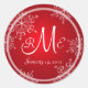 Élégant autocollant monogramme de flocon rouge pour mariages, faveurs et autres occasions spéciales d'hiver. Invitations correspondantes disponibles.