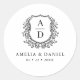 Sticker Rond Mariage Monogramme Moderne Crête Noir Blanc