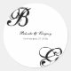 Ce design présente les initiales de la mariée et du marié comme le principal objet du design. Les initiales personnalisées de script utilisant la typographie de police de script créent une parfaite fusion entre le moderne et l'élégance. Un design simple personnalisé minimaliste autocollant mariage avec monogramme moderne noir et blanc. Des invitations de mariage et des articles de papeterie sont également disponibles. Pour repositionner les initiales, cliquez sur le lien "Cliquez pour customiser plus loin" lors de la personnalisation des détails.