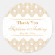 Mariage motif d'art déco or et blanc merci sticker. Le design présente de l'or sur un motif d'inspiration art déco blanc, les noms des mariés et des mariés et la date en or. Style Gatsby des années 1920.
