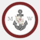 Sticker Rond Mariage nautique Ancre florale Maroon rouge blanc