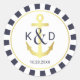 Un design nautique classique avec ancre en or et la date initiale et mariage de la mariée et du marié. Entouré de rayures marines et blanches, cet autocollant est un choix merveilleux pour les mariages ou les parties de fiançailles à thème nautique. Utilisez sur les faveurs de mariage, la correspondance et plus encore.