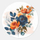 Sticker Rond Mariage Navy Blue and Orange Peony