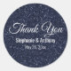 Faux bleu marine parties scintillant mariage merci étiquette. Le design présente une texture de parties scintillant bleu marine tendance, le texte "Merci", les noms de mariée et de mariée et la date du mariage.