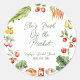 Ajoutez la touche finale parfaite à vos faveurs de mariage avec ces autocollants ronds classiques "Fraîchement cueillis au marché" ! Avec un design charmant inspiré des marchés de producteurs avec des fruits et légumes vibrants, ces autocollants apportent une touche rustique et élégante à votre célébration. Parfaits pour sceller les sacs de faveurs, les pots ou les cadeaux, c'est une façon délicieuse de lier votre thème ensemble.