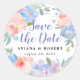 Sticker Rond Mariage rose et bleu floral Enregistrer la date