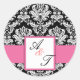 Sticker Rond Mariage rose Monogramme Damask Sceau