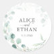 Cherchez l'essence de votre journée spéciale avec notre élégant Sticker de Mariage, conçu avec soin pour ajouter une touche de romantisme à votre célébration. Encerclant l'autocollant circulaire, une délicate couronne d'aquarelle d'eucalyptus symbolise l'amour et l'harmonie durables. En son coeur, vos noms sont inscrits gracieusement dans une police serif sophistiquée, entrelacée par le mot "Et" dans un script moderne fluide. Cet autocollant capture magnifiquement l'union de deux coeurs et est parfait pour ajouter une touche personnelle à vos faveurs de mariage, invitations, ou notes de remerciement.