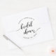 Autocollant pour enterrement de vie de jeune fille avec les mots "Bridal Shower" dans un script cursif détendu en noir sur fond blanc.