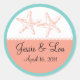 Mariage turquoise et corail Starfish. Cet autocollant mariage affichant votre nouveau nom/initiales mariés peut être utilisé pour gâteau ou ballotins, sacs à bonbons, sacs de cadeaux de voyage et bien plus encore! Pour toute question sur les changements de conception personnalisés par le concepteur indépendant, veuillez envoyer un courriel à paula@labellarue.com AVANT de customiser ou de passer une commande.