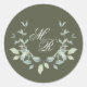 Sticker Rond Mariage Vert Monogramme Classique Personnalisé