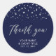 Cet autocollant de remerciement personnalisé moderne ajoutera des détails élégants à votre journée spéciale. Ce design présente des lettres d'argent " Merci " et des confettis hexagones sur un arrière - plan bleu marine. Des invitations de fête d'anniversaire et des papeteries sont disponibles dans ma boutique BaraBomDesign.