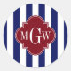 Sticker Rond Marine Blancs Burgundy Quatrefoil 3 Monogramme