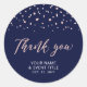 Cet autocollant de remerciement personnalisé moderne ajoutera des détails élégants à votre journée spéciale. Ce design présente des lettres d'or rose " Merci " et des confettis hexagones sur un arrière - plan bleu marine. Des invitations de fête d'anniversaire et des papeteries sont disponibles dans ma boutique BaraBomDesign.