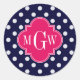 Sticker Rond Marine What Polka Dot Raspberry Quatrefoil 3 Monog