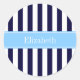 Sticker Rond Marine White Stripe Sky Blue Ribbon Nom Monogramme