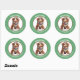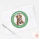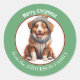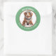 L'image d'un adorable petit chien chiot australien de couleur rouge et blanche portant son casquette d'hiver est au centre de ce mignon sticker Holiday. L'image est encadrée dans une bordure circulaire verte qui contient votre texte personnalisé en blanc. Idéal pour les cartes de Noël, la correspondance et les forfaits cadeaux.