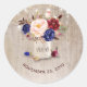 Sticker Rond Marsala et Fleurs Bleues Mason Jar Mariage rustiqu