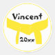 Customisez le Sticker ceinture jaune des arts martiaux pour créer un cadeau de gardien pour un test de promotion de rang ceinture. Personnalisé avec le nom de votre artiste martiale, nom de l'équipe ou de l'école ou art martial spécifique. Ce sticker personnalisé d'arts martiaux comporte une photo améliorée numériquement ceinture jaune attachée dans un noeud avec un arrière - plan blanc.