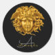 Cette enveloppe sceau design avec arrière - plan noir est une copie monogrammée chic d'un masque medusa doré créé à l'origine avec le bronze doré en France vers 1875 et détenu à une époque par le célèbre financier ultra-riche John Pierpont Morgan. Selon la mythologie grecque antique, Medusa, également appelée Gorgo, était l'un des trois terribles Gorgons magiques, généralement représenté comme des femelles humanoïdes ailées avec des serpents venimeux vivants à la place des cheveux sur la tête. Toute personne qui aurait regardé dans les yeux de Medusa aurait été transformée en pierre. Vous pouvez facilement modifier l'orthographe, le style, la couleur et la taille du texte à l'aide du bouton Personnaliser Zazzle.