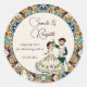 Mehndi et sangeet mariage indien merci préférez les autocollants modèle, carreaux vintages motif arche moderne mignon couple de danse lanternes caricature décor Mehndi et sangeet préférez les autocollants