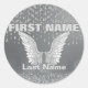 Un autocollant en argent avec ailes d'anges et larmes. Ajoutez un nom pour customiser ce modèle.