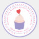 Merci moderne de faire l'autocollant si doux de la Saint Valentin pour les enfants, sacs de cadeaux, pour la fête, pour les enseignants en violet et rose avec gâteau de tasse graphique.