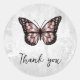 Sceller des enveloppes pour vos cartes de remerciements avec ce Sticker Merci à papillon rose brillant. Le design de l'autocollant présente un papillon brillant orné d'une vigne de feuillage contre un arrière - plan gris. Autres articles de papeterie correspondants disponibles avec cette conception aussi. Si vous avez besoin d'aide pour la personnalisation, veuillez me contacter directement.