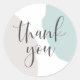 Un autocollant de remerciement dans un style moderne simple avec des formes abstraites dans des coins opposés en bleu marine doux et beige écru. Le texte de Merci est écrit dans une face de type manuscrit tendance. Ces autocollants sont un bon choix sur les faveurs ou à utiliser comme scellés d'enveloppe sur des notes de remerciement et plus encore. Ils sont disponibles en 2 tailles différentes.