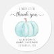 Un autocollant mignon pour votre baby boy shower favorise avec une aquarelle bleu pastel d'un citrouille et "un doux petit merci" écrit en simple typographie et un script élégant. Personnalisez le nom et la date de douche de la mère dans la coordination de la typographie gris doux.
