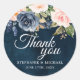 Sticker Rond Merci botanique bleu bleu rose bleu marine