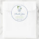 autocollants de Merci pour tout événement (illustrés ici pour un Baby shower mais tous les champs de texte sont personnalisables). Le design se compose d'un élégant vase en pot de gingembre rempli de fleurs de printemps dans les tons bleu et blanc.