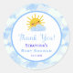 Sticker Rond Merci de Baby shower bleu nuageux doux