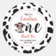 merci de célébrer avec nous, la vache sainte, en tournant un premier anniversaire avec un peint numériquement mignon et un motif de vache avec un nom et des couleurs à customiser, combinant corail rose, noir et blanc couleurs. Conçu et peint par @rodicadraws.