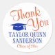 Ajoutez une touche élégante et personnalisée à la remise des diplômes de l'université ou du secondaire grâce aux cartes de remerciement et aux faveurs de fête avec autocollants ronds orange et bleu / scellés d'enveloppe. Tout le texte est simple à customiser. Le design comprend un arrière - plan blanc, un casquette en mortier bleu et une typographie de script de style calligraphie moderne. Félicitations au diplômé !