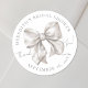 Un autocollant classique et élégant à arc blanc avec douche de nage avec un arc à eau doux et blanc surdimensionné. En haut, il y a le nom et la "Fête des mariées" de la future mariée et en bas, la date. Au centre, à côté de l'arc blanc, se trouve "Merci !" en écriture gracieuse. Ce design de douche nuptiale simple et intemporelle utilise du texte gris dans un mélange de serif et de typographie de script, créant un look raffiné mais charmant. Vous pouvez customiser les couleurs de police et l'arrière - plan pour convenir à votre style. Fête des mariées à thème Merci Elegant Aquarelle blanche Étiquette à chevalet de .