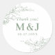 Sage Green Floral Wreath Monogramme Merci Classic Round Sticker