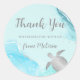 Cet autocollant de remerciement d'anniversaire tropical présente une élégante tortue de mer argentée sur un arrière - plan turquoise d'encre d'argent turquoise. Customisez-le avec votre nom.