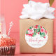Sticker Rond Merci écriture rouge vert de Noël fleurs florales
