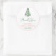 stickers Merci pour n'importe quel événement de vacances (montré ici pour un Baby shower mais tous les champs de texte sont personnalisables). Le design est composé d'un sapin de Noël stylisé décoré de baubles motifs "bocal de gingembre" rose et blanc.