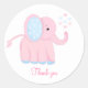 Un petit éléphant rose mignon qui vaporise le coeur de son coffre. Les accents bleus. Le mot "merci" en rose. Customisez comme vous le souhaitez.