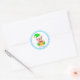 Bonjour elfe vert mignon salutations sur autocollant Merci blanc et bleu clair. Le texte peut être personnalisé.