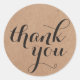 modèle autocollant Merci avec polices d'arrière - plan papier kraft imprimé et cool écriture manuscrite.