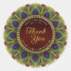 Texte central personnalisable dans un cercle de plumes paon. De magnifiques couleurs vertes et violettes avec de riches garnitures d'or. Texte courbe merci modèle