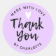Sticker Rond Merci fait à la main avec amour violet classique r