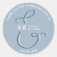 Simple, minimaliste, élégant, unique bleu poussiéreux mariage autocollants de remerciement pour les faveurs avec calligraphie moderne, initiales monogrammes, noms, date et élégante et tendance.