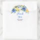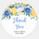 Ce sticker de remerciement de mariage magnifique et élégant présente des fleurs bleu, jaune et blanc à l'aquarelle avec feuillage. Le texte combine écriture manuscrite et polices serif pour un look élégant et moderne. Il est parfait pour un mariage rustique de printemps ou d'été.