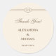 Express votre gratitude avec élégance en utilisant cet autocollant personnalisé, minimal Taupe Mariage merci. Ce design minimaliste présente un cadre délicat et doublé en forme ovale organique, mettant en valeur le monogramme du couple en son centre. La typographie taupe chic associée à une police de script gracieuse crée un contraste intemporel contre un arrière - plan crème classique. Parfait pour les faveurs de mariage simples et modernes, cet autocollant ajoute une touche raffinée et sobre de sophistication à vos notes de remerciement et cadeaux.