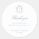 Dusty Blue Vintage Crest monogramme, la faveur de mariage Merci sticker.